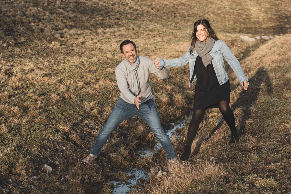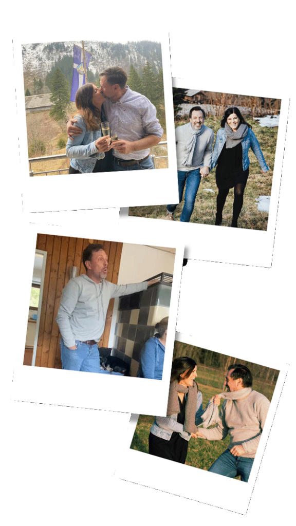 Seid dabei, wenn sich Gaby & Uwe nach 11 Jahren endlich trauen! Manche von euch haben schon sehr lange auf diesen Tag gewartet und zwischenzeitlich auch schon die Hoffnung aufgegeben. Am 8. April 2023, dem 51. Geburtstag von Gaby, war es endlich soweit! Auf 1283 m, in der bei Freunden und Familie sehr beliebten Freiburger Ski Club-Hütte, kam es zu dem lang ersehnten Ereignis. Niemand war eingeweiht, da Uwe sich nicht sicher war, ob der Mut ihn nicht doch noch verlassen könnte. Geschickt eingefädelt hielt er eine Ansprache, nachdem Gaby ihr Geschenk, einen kleinen Reisekoffer, ausgepackt hatte. „Möchtest du eine Reise mit mir machen, eine sehr lange Reise?“, fragte Uwe seine Gaby. Die blickte noch immer nichts ahnend in die Runde, wo Zoe (Gabys jüngste Tochter) geistesgegenwärtig den geschichtsträchtigen Moment mit dem Handy aufnahm (siehe Video). Das Video endet mit den schreienden Worten von Zoe „Oh mein Gott!“, nachdem Uwe die wichtige Frage gestellt hat: „Magst du meine Frau werden?“ Seine 2 Brüder haben diesen wichtigen Moment beinahe komplett verschlafen, hätte Flavia (Uwes und auch bald Gabys Schwägerin) sie nicht geweckt. Es blieb kein Auge trocken, die Überraschung war geglückt! Alle freuten sich, bis Gaby die Anwesenden darauf aufmerksam machte, dass sie noch nicht geantwortet hatte. Nach einer kleinen Schrecksekunde, gab sie das Ja-Wort in dreifacher Form: